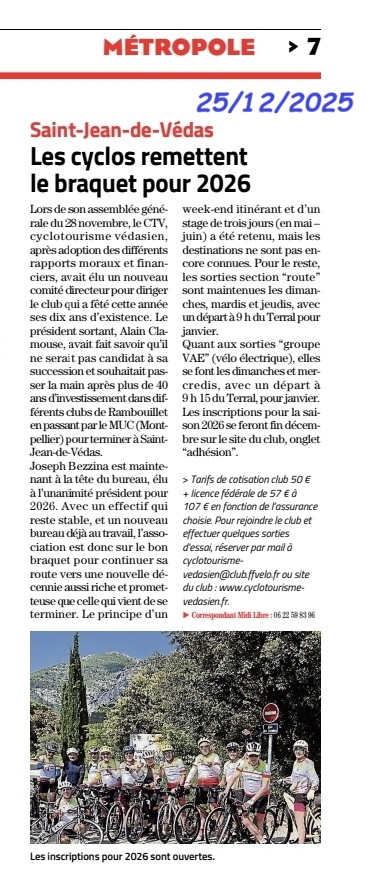 Le club est affilié à la Fédération Française de Vélo sous le numéro 08119
